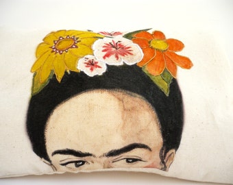 Decorative Stuffed Pillow with Hand Painted Frida Kahlo. Boho Girls Cushion, Best Friend Gifts.