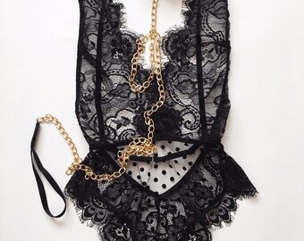 Sheer black lace bodysuit - handmade lingerie, lace bodysuit
