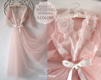 Boudoir Blush dress, Bridal Robe Lace, Tulle boudoir gown, Boudoir gown, Blush boudoir lace gown, Embroidered Lace Bridal Blush Robe