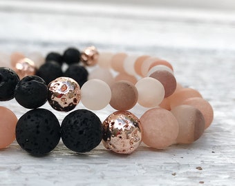 Blush Pink Aventurine gemstone diffuser bead bracelet, Rose gold lava bead, blush jewelry