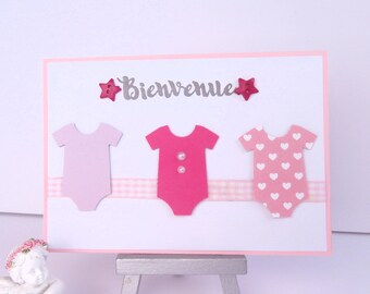 Make girl birth announcement - share pink Leotard - invitation is handmade