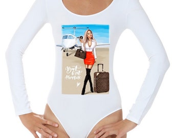 Woman Bodysuit Airplane Beautiful Girl Fashion Bodysuit
