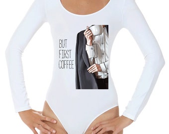 Woman Bodysuit But First Coffee Fashion Bodysuit