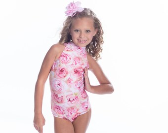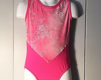 Pink Girls Unique Dance Leotard- Leotard in Floral Print with Mesh for girls- Dancewear- Womens Fashion Bodysuit