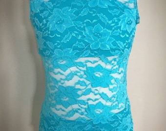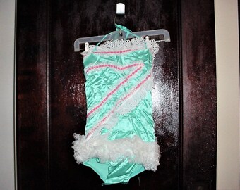 Vintage 80s Green Workout Cheerleader Lace Leotard Childs 12