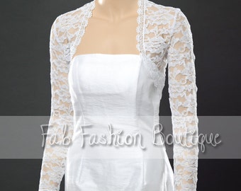 White long sleeved lace bolero jacket shrug Size S-XL, 2XL-5XL