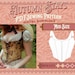 Pattern includes: Sewing Pattern, Material List, Instructions, and Details on Alterations for a larger/smaller Pattern.