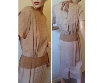 40's Dress Vintage Sheath Dress Caramel Brown 1940s Fashion Peplum