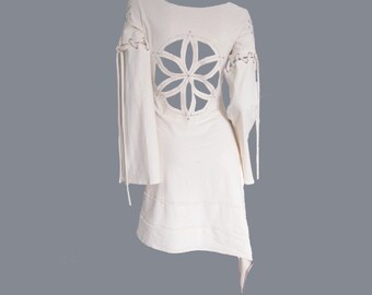 CARNATION DRESS [ festival clothing . festival dress . hippie dress . asymetrical dress . flower of life . seed of life. lace up dress ]