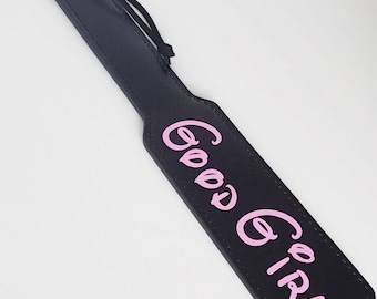 Adult/Mature BDSM ADBL DDLG Black Good Girl Bondage Spanking Leather Punishment Paddle available with blue red baby pink purple letters