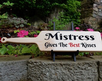 Wood Spanking Paddle BDSM 3.5 inches by 16 inches Mistress Gives The Best Kisses