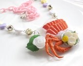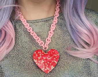 I Heart Japanese Food. Harajuku Lolita Fairy Kei Inspired Sweet Kawaii Large Sushi Sashimi Pink Chains Glass Beads Lovely Necklace