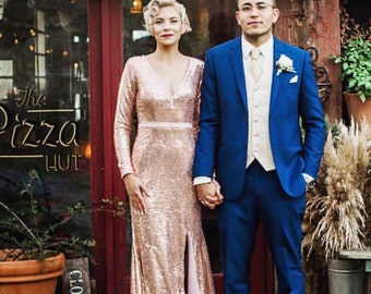 Sequin mermaid dress / rose gold sequin dress / rose gold sequin wedding dress / rose gold bridal gown / custom made blush wedding dress