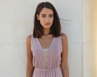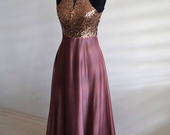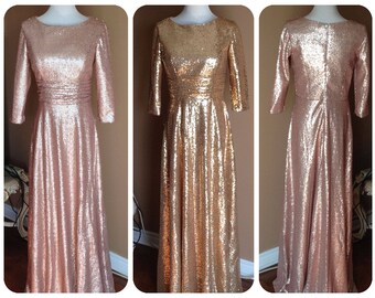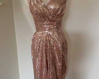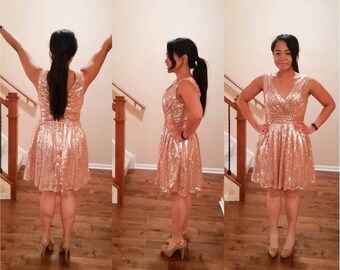 Rose gold sequin bridesmaid dress, Blush gold bridesmaid dress, Chirstmas Party Dress, Rose gold sequin dress
