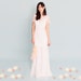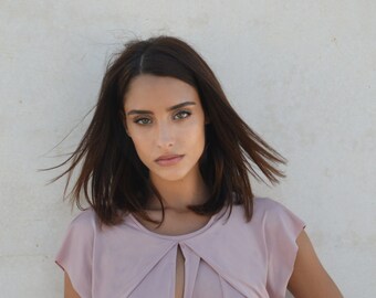 Blush bridesmaid dress, symmetrical folds on neckline, floor length bridesmaid dress