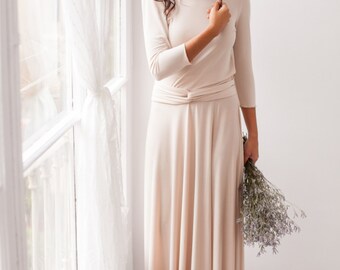 Beige infinity dress, Champagne Bridesmaid dress, prom dress, twist dress, convertible dresses, cocktail dresses, multiway Toga dress cream
