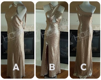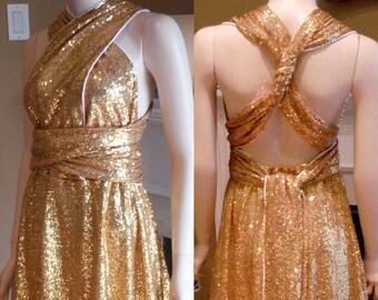 Gold sequin bridesmaid dress, convertible bridesmaid dress, infinite bridesmaid dress, gold sequin dress