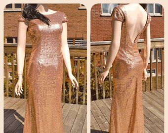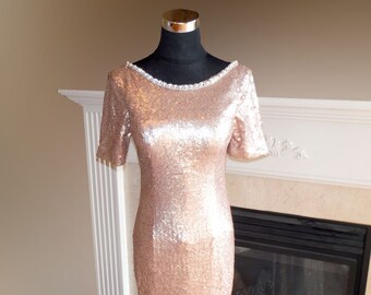 Rose Gold Sequin Dress with open back---- in stock and ready to ship!