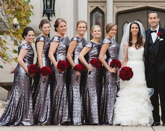 Silver sequin dress, silver sequin bridesmaid dress, grey bridesmaid dress