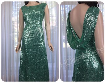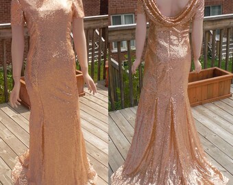 Cowl back dress, rose gold sequin bridesmaid dress, rose gold sequin dress