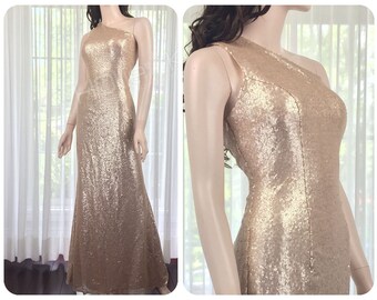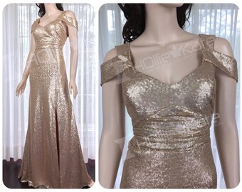 Gold sequin dress, gold sequin bridesmaid dress, party dress, long sequin dress