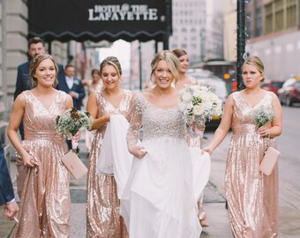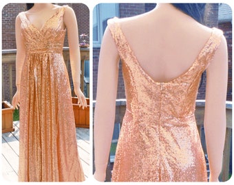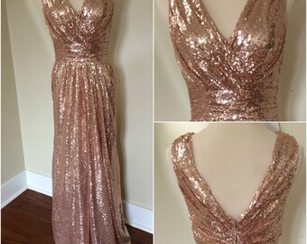 Rose Gold Sequin Bridesmaid Dress, Prom Dress, Low V Sequin Dress, Sequin Bridesmaid Dress, Long Sequin Dress