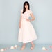 Bridesmaids blush bridesmaid dress, knee-length dress, lace on cleavage ,bell shape skirt.