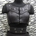 OPTION 2: The two-piece version includes a top (looks like you're wearing a leather jacket backwards) and pants that connect together at the interior waist with elastic loops and hooks. The corset disguises the joining of the two catsuit pieces. You will need someone to help you lace up the back of the top as this is where it opens and closes. Putting on the two piece catsuit is not a quick process! But you do get the benefit of it overall looking very tight fitting if that is what you're going for.