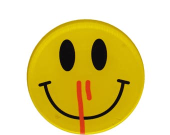trash smiley - emoji - acrylique laser cut pin back badge - pop art style