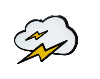cloud - flash of lightning - print acrylique laser cut pin back badge - pop - arty