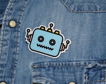 cool robot - print acrylique laser cut pin back badge - pop art style