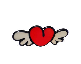 LOVE - angel - HEART - print acrylique laser cut pin back badge - pop art style
