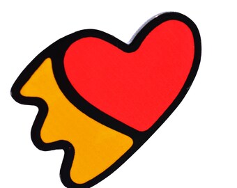 LOVE - GRAPHIC HEART - print acrylique laser cut pin back badge - pop art style