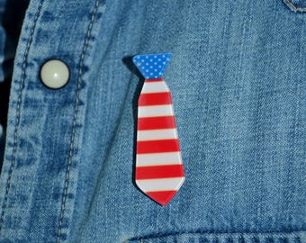 USA flag - tie - print acrylique laser cut pin back badge - pop - arty