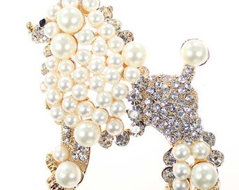 Poodle Brooch, Poodle Broach, Pearl Rhinestone Poodle Jewelry Component, DIY Craft Project Embellishment