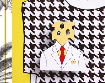 Roy Lichtenstein, Cheese Pin, Yellow Jewelry, Wooden Brooch, Art Pin, Laser Cut Pin, Yellow Pin, Food Junkie, Food Jewelry, Jewelry Gift