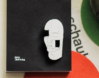 Art Pin, White Pin, Wood Pin, Boyfriend Gift, Wooden Brooch, Laser Cut Pin, Statement Jewelry, Wooden Gift for Him, Geometric Wood