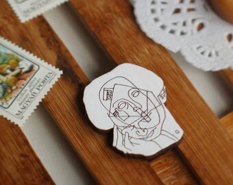Boyfriend Gift, Mens Jewelry, Rene Magritte Pin, Art History, Wooden Brooch, Laser Cut Pin, Mens Wood, Wooden Gift for Him, Valentines Gift