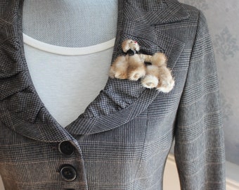 Vintage 1950s Blonde Mink Fur and Rhinestone Poodle Brooch