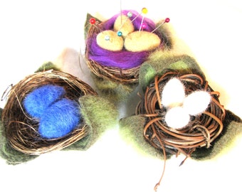 I'm Nesting,Custom Made Hand Needle Felted Eggs in a nest, brooch/pin cushion/hairclips/decoration/gift...