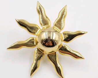 Vintage Signed Norma Jean Gold Tone Blazing Sun Brooch,Modernist Style Sun Burst Brooch, 1980's Jewelry