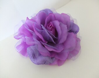 Large Organza Flower Brooch, PURPLE, Sash Flower, Headpiece, Dress accessories