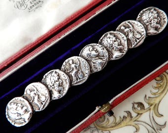 Large 4" Vintage 1950s Keim London Solid Silver (Tested) Antique Greco-Roman Coin Brooch, Great Cond. Large & Striking! Vintage Jewellery.
