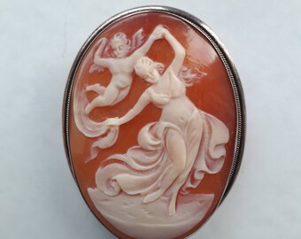 Cameo Silver cherub cameo broach , mother and child , exquisite carving , broach or pendant , hallmarks ,