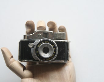 Mini Homer 14 x 14 camera with brown leather case, machine 007, spy Photocamera