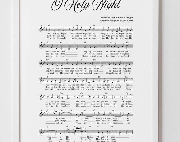 O Holy Night piano music sheet, Christmas hymn, vintage carol, Xmas song, Holiday decor, wall art, printable, Instant Download