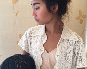 Handmade antique lace tiara ideal for bride wedding, party or the races