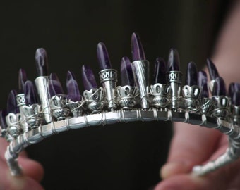 amethyst crown, silver wedding tiara crown, February birthstone jewelry, fairy queen crown, cosplay headpiece, princess crown, gemstone