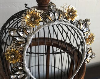 Mini Gold or Silver Vintage Lace Crown Headband