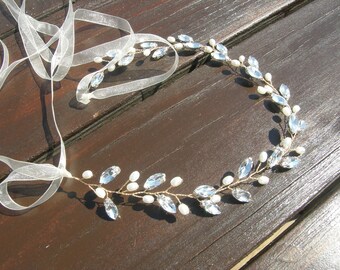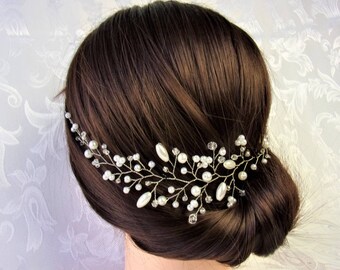 Pearl and cristal Bridal Hair vine, Bridal Headband, Bridal pearl head jewelry, Wedding hair jewelry, Bridal headpiece